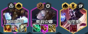 阿利斯塔、加里奥、奥莉安娜、萨勒芬妮、赛娜、大虫子阵容羁绊3巨像2名流2白魔