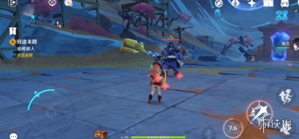 首先进入到秘境后会有一段对话,对话过后使用烟绯击败6个盗宝团。