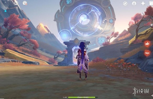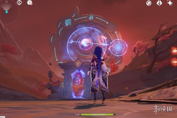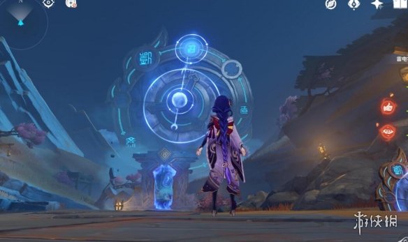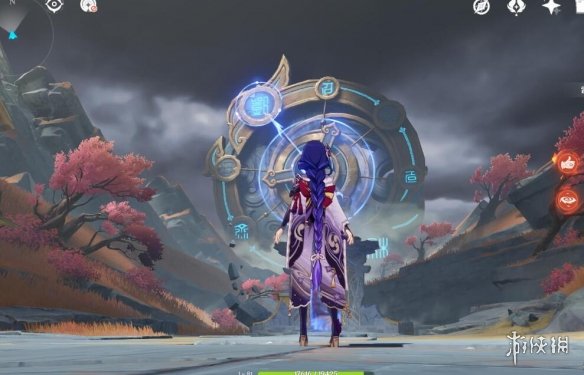 然后把太威仪盘边上的小树苗砍掉,回头开启元素视野,会发现有两个炸药桶和一块石头,打碎,然后正向旋转仪盘进入二号空间。