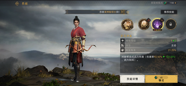 1、小伙伴需要将武将等级提高到5级,然后就可以激活一个技能槽。