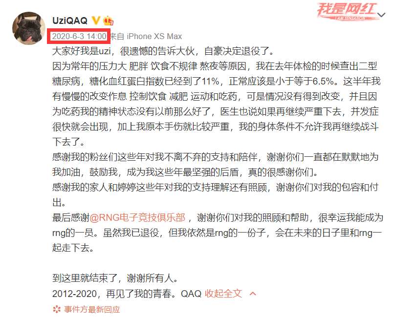 虽然Uzi说的是自己夏季赛休息,但是有宁王、金贡等一众老将休息的前车之鉴,我们都知道这或许意味着Uzi的再次退役。值得一提的是,两年前的今天,2020年6月3日是Uzi第一次退役,当时给出的理由是身体原因。现在Uzi在直播里宣布自己夏季赛休息,休息的原因是“如果自己再强一点就好了”,不得不令人唏嘘实力就像时间一样在Uzi身上流逝。