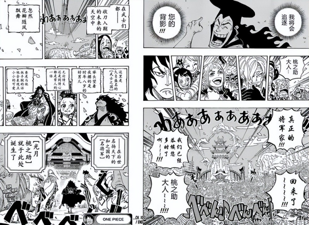 以上就是海贼王1051话漫画的全部内容,这一话之中,光月桃之助正式继任和之国将军之位,毕竟他是光月一族的唯一传人,自然是和之国将军最合适的人选,更别说,他还带着盟友击败了大蛇和凯多的百兽海贼团。至于大和上船,似乎也已经是板上钉钉的事情了。
