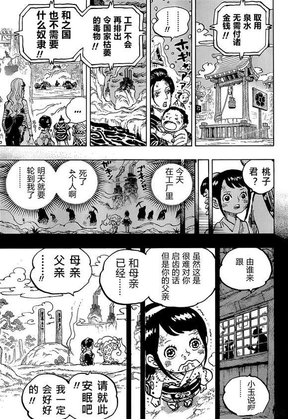 小玉在父母去世之后去卖斗笠,结果遇到了师傅飞徹;他让小玉再等等,光月一族的武士会再次归来,讨伐掉四皇凯多。