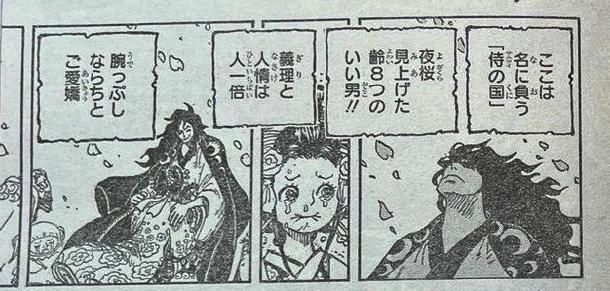 而最新的1051话中,桃之助先是发表全国演讲,让和之国民众激动不已,毕竟是等待二十年的光复,谁也不曾相信四皇凯多就此落败。桃之助佩戴天羽羽斩,以成人姿态正式现身。天羽羽斩是御田生前使用的佩刀之一,其威力与索隆的阎魔不相上下,这次桃之助佩戴这把刀,也算是继承父亲的意志及衣钵。