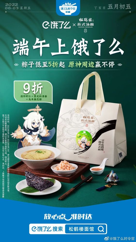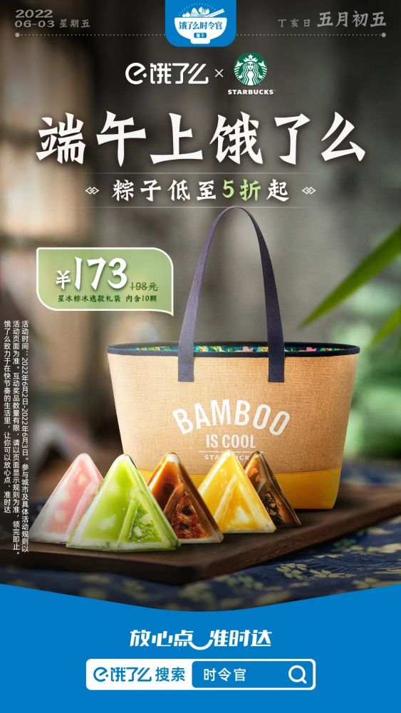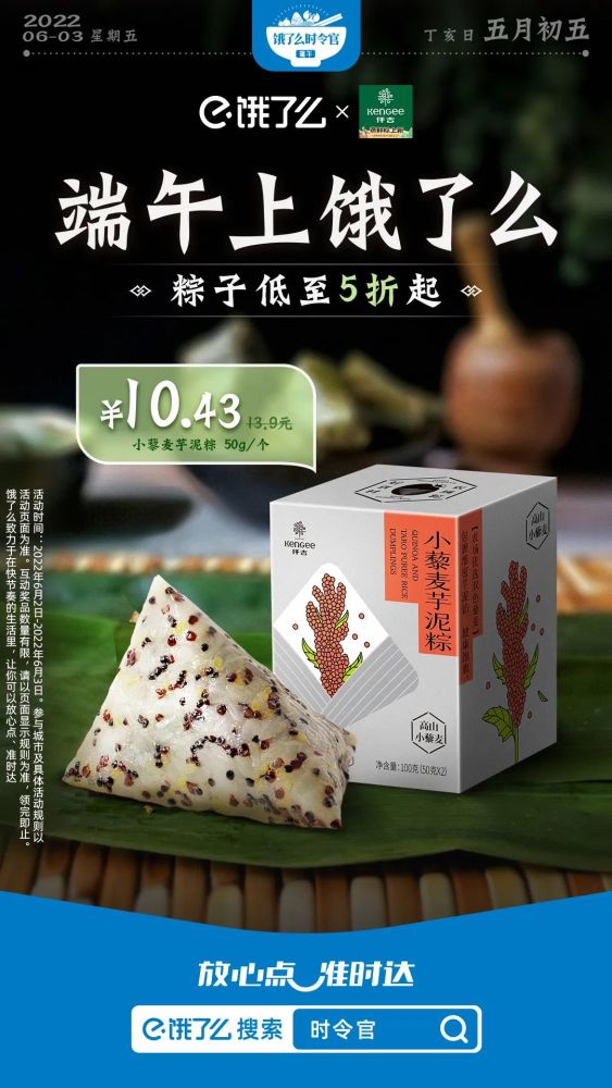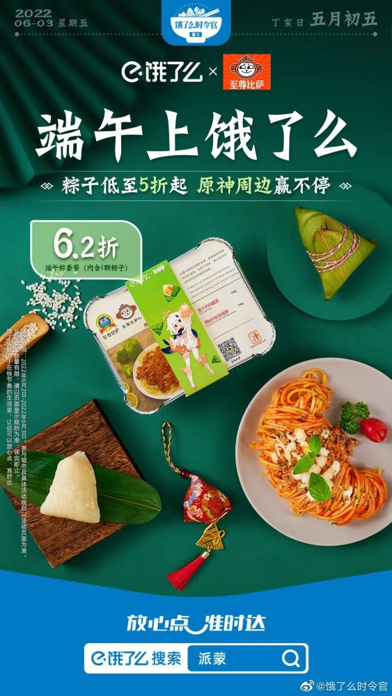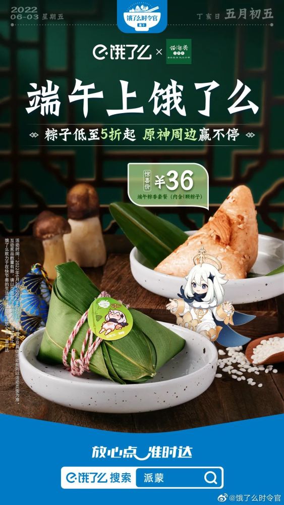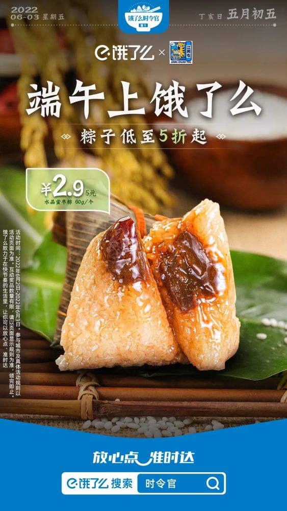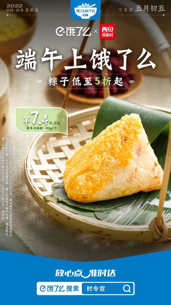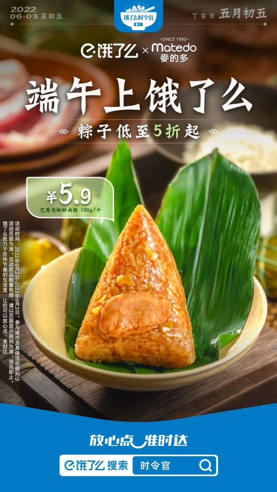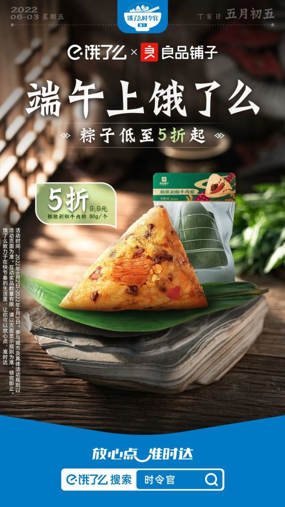 不妨看看饿了么今年端午节的吆喝:端午上饿了么,“粽”有新惊喜。