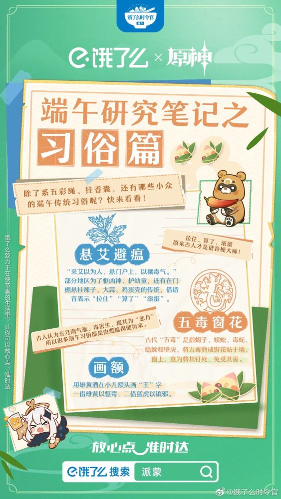 饿了么选用最能引爆传播的测试形式,以主题“你是哪味粽”吸引用户对号入座,用粽子口味为性格打标签,配以原神IP的可爱形象,吸引用户自主转发、撬动私域流量,“是甜是盐”测一下便知~