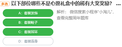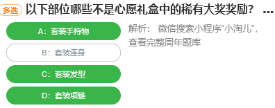 以下部位哪些不是心愿礼盒中的稀有大奖奖励?