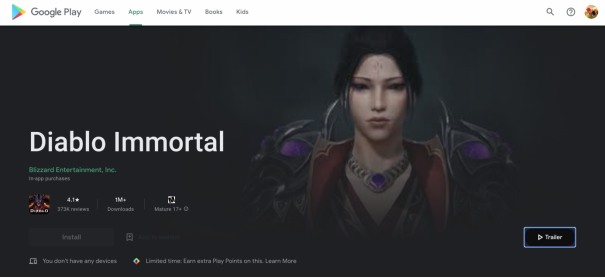 在谷歌商店超过33万条评价中,《暗黑破坏神:不朽》成功砍下了高达 4.3的玩家评分(满分 5)。