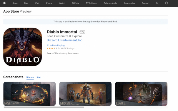 在AppStore超过4.8万条评价中,《暗黑破坏神:不朽》成功拿下了高达4.7分的玩家评分(满分5分)