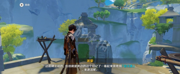 和石碑对话,可知要用岩元素触发五个印记。