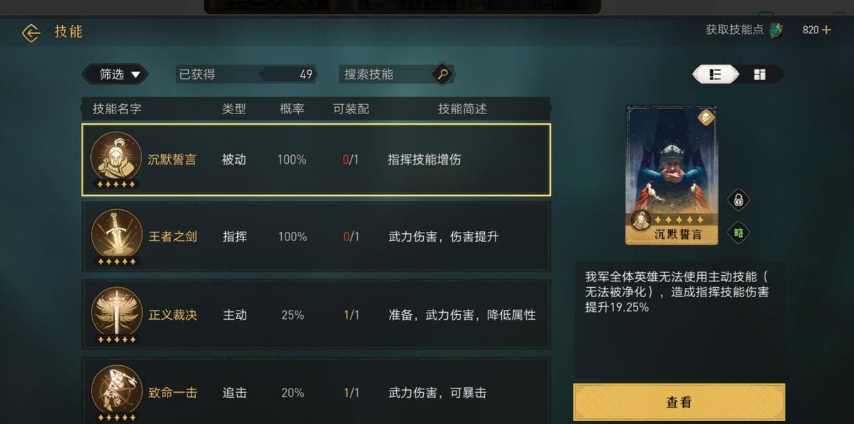 每个技能都有其对应的加成属性,例如武力加成的技能,我们就应该优先装配给主属性为武力的人物,其他属性的技能也是同理。