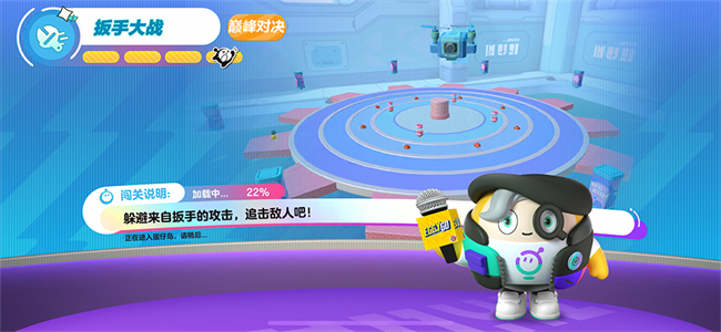 “扳手大战”的作战场地围绕着中心柱,向外延展出四条跑道。随着游戏的进行,外侧跑道将逐渐坍塌,迫使蛋仔们向中心区域聚集。多人混战,战火已燃,谁主沉浮?