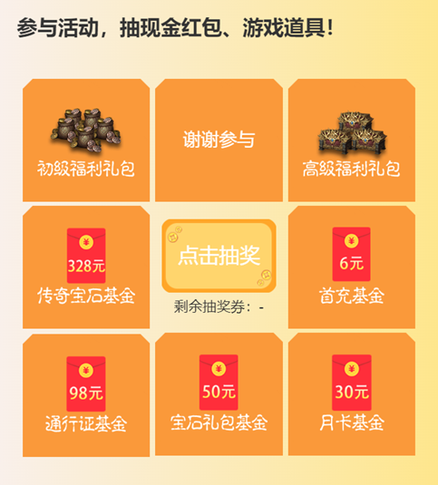 完成任务越多,可获得的抽奖券越多,中奖概率直线上升!暗黑不朽初级福利礼包(3888金币)、暗黑不朽高级福利礼包(1级随机宝石*1+神殿宝箱钥匙*6)以及游戏基金多重好礼等你瓜分。其中,累计签到7天必得<暗黑不朽初级游戏礼包>、累计签到14天必得<暗黑不朽高级游戏礼包>。赶快参与抽奖活动,游戏基金最高可得328元,下一个锦鲤就是你!