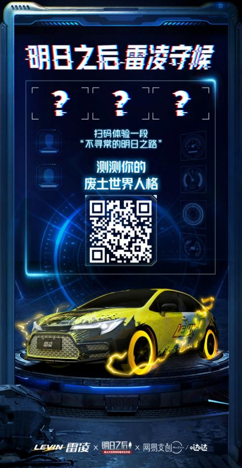 (扫描二维码)即可进入明日之后、广汽丰田雷凌、网易哒哒联合出品H5,测测你的废土世界人格。
