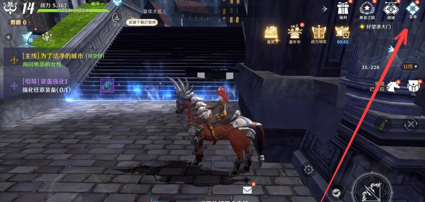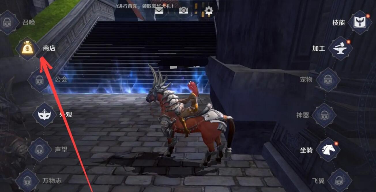 首先,进入无神之界手游,点击左上角如图所示菜单;
