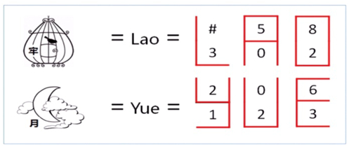 此谜题的难点是通过示例,找出文字和字符表之间的对应关系。仔细观察字符表,会发现每个字符四周的轮廓线不同,从而得到字符与轮廓线如下的对应关系: