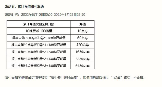 想要高性价比拿到传世典藏皮肤自选法球的话,需要搭配同期上线的累充活动进行抽取,累充活动可以额外获得1500魄罗能量以及8个优惠券,每个优惠券能够以1点券购买到福牛传世宝箱,共计可以购买八个,同时全球冠军杯期间,参与活动也能白嫖一些福牛传世宝箱,。两个活动加在一起,可以节省很大一笔点券支出!