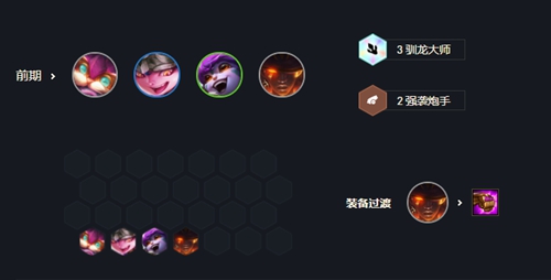 1、开局先抢眼泪获得大剑大棒,拿驯龙大师加炮手或者斗士过渡。
