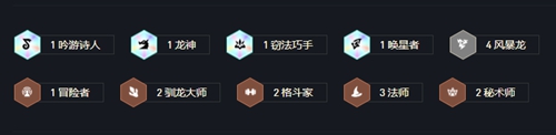 1吟游诗人、1龙神、1窃法巧手、1唤星者、4风暴龙、1冒险者、2驯龙大师、2格斗家、3法师、2秘术师