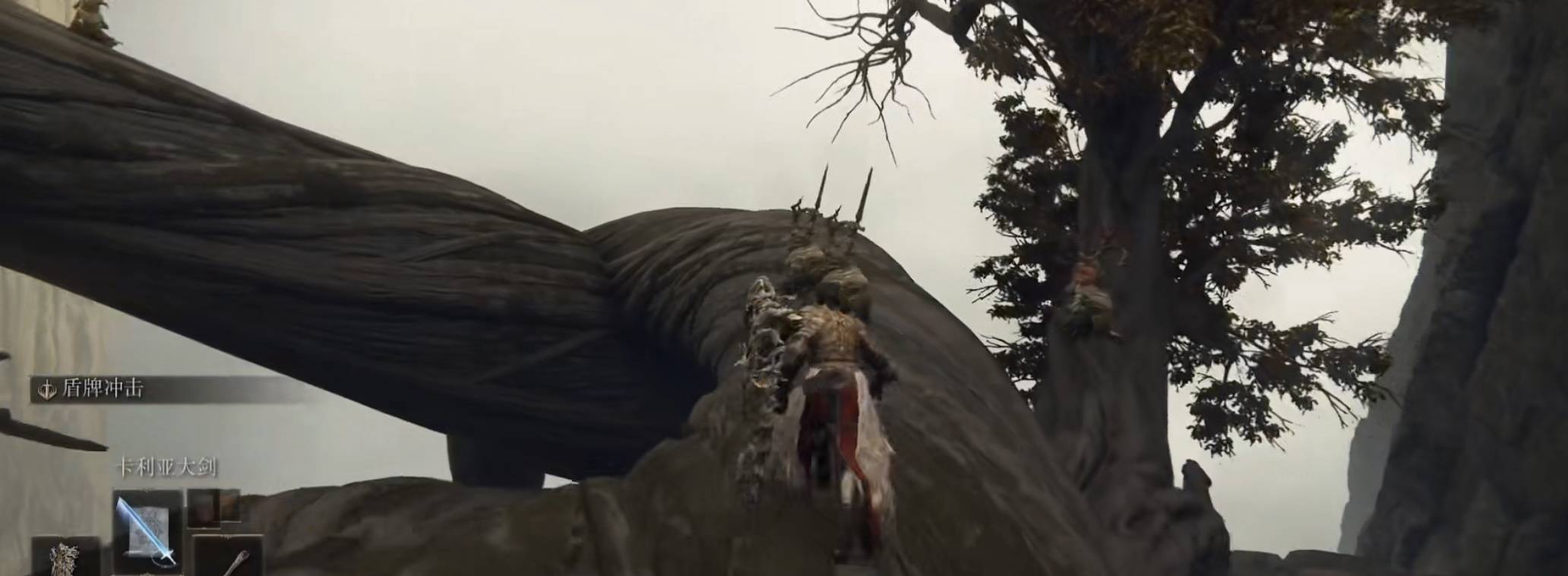 2、进入场景后,找到一颗大树,顺着枝干往上走,到达王城的最高处。