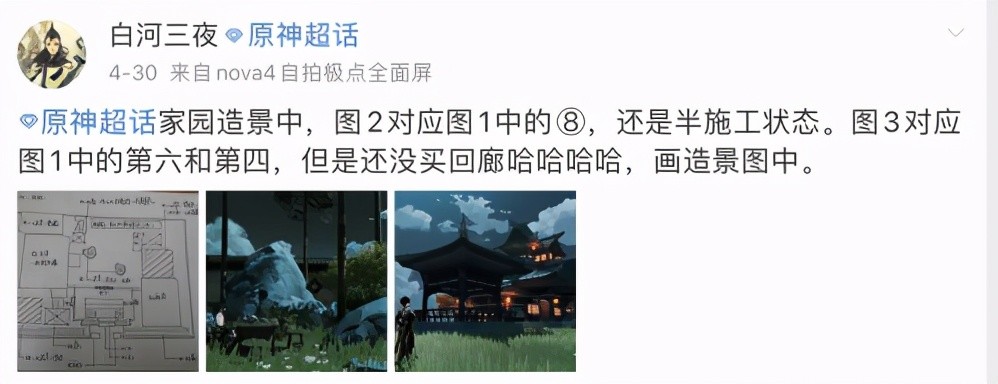 虽说这位大佬并未学过设计,但他作为工科出身,这图画的还是相当出彩的。更主要的是,他在园林的布局、规划方面似乎颇有研究;虽比不上专业人员,但比起像我这样只会“抄作业”的菜鸡来说,这已经很了不起了。其他玩家看到他的图纸后看后更是直呼“牛X”,甚至还有不少人怀疑他的专业是否与园林、室内设计有关;殊不知,这几张图只是这位大佬上课摸鱼时所画的草稿,真不愧是“专业玩家”啊。