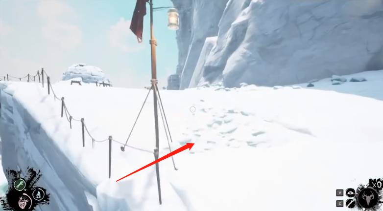 2、小伙伴就可以使用冰镐爬冰墙,到达冰山的上方了。
