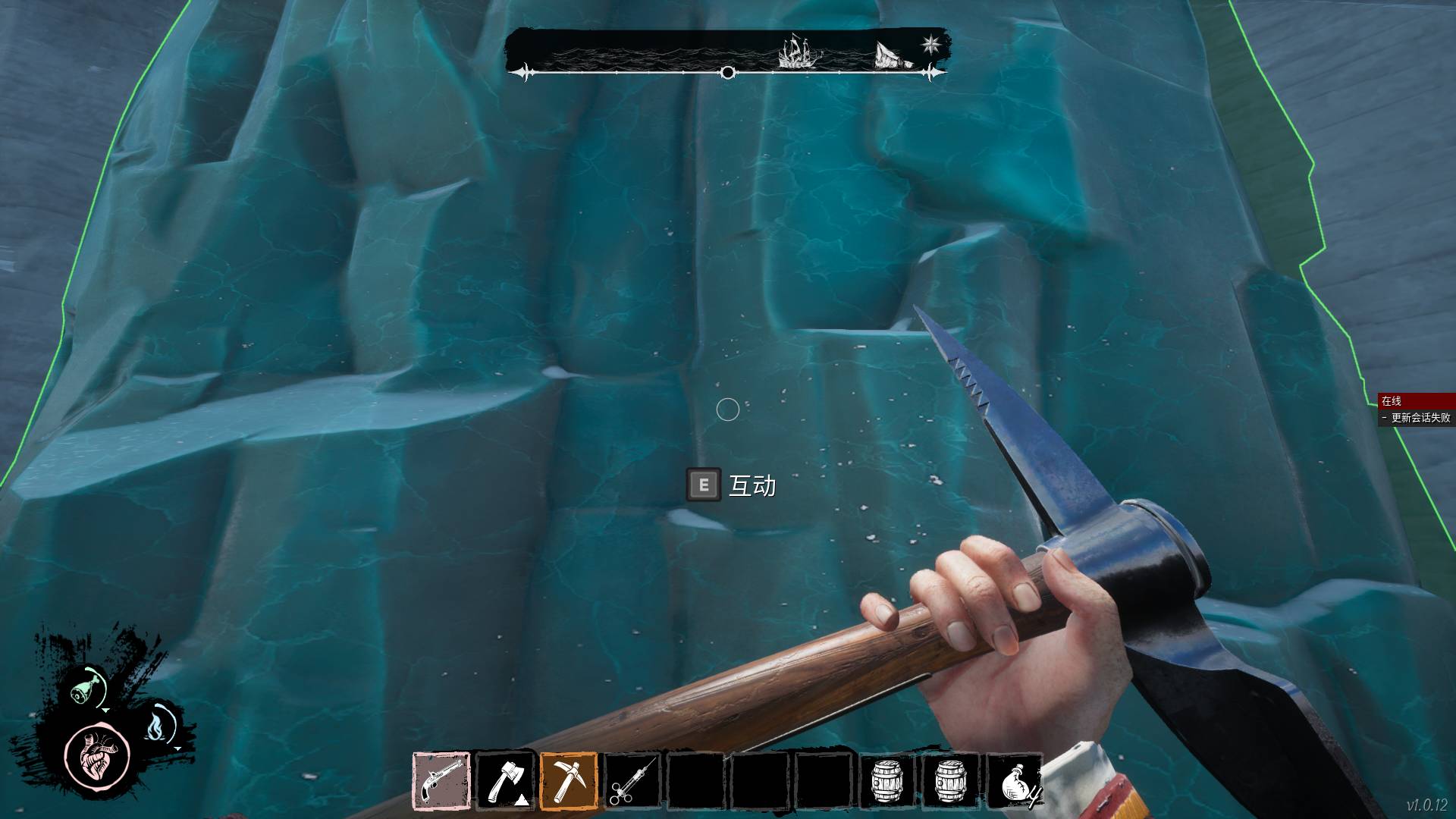 1、小伙伴进入手游后,首先需要走到冰墙的面前对着冰墙按键盘上的E键进行互动,具体如下图所示。