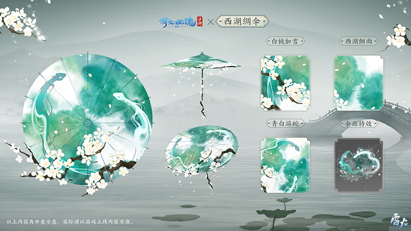 这份匠心之作同款全新特效道具伞,将于《新白娘子传奇》联动期间优雅上线,敬请期待!“愿你下雨有伞,所遇皆是良人”,一同在西子湖畔,看流传千年的白蛇传说诗意入画,品水乡烟雨后的青空浪漫,零距离感受跨越时空、生生不息的杭州文化之美。