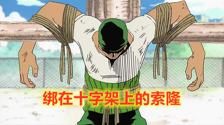 1、初次见路飞,索隆被绑在十字架的柱子上
