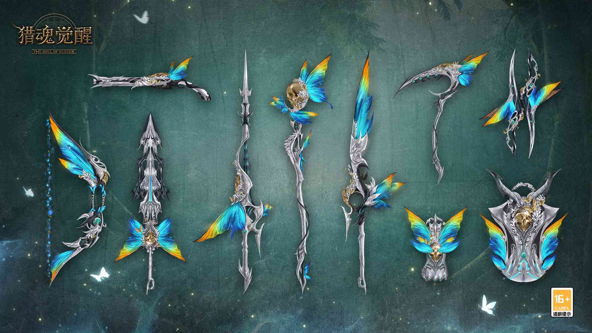 你想为自己的武器增添浪漫的冥蝶羽翼吗?“冥蝶之章”同款武器礼装融入炫彩蝶翼元素,为战斗增添神秘色彩。高饱和度彩虹色渐变混搭,与各类武器的优雅造型完美融合;晶莹幻彩质感,在银质武器中注入梦幻之美,为玩家们的狩猎更添一份潇洒!冥蝶破茧之时,奏响亡灵的挽歌……
