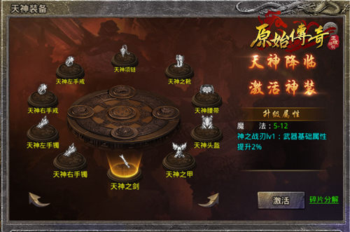 (2)天神装备可通过碎片升级(拆除多余天神装获得)