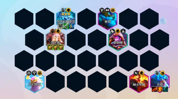 后期阵容8人口找到2星赫里卡姆和2星迭嘉,如果努努没有3星,那么继续找3星努努。后期如果有多余的经济可以追下3星艾维尼亚,正常情况下是没有太多的经济去拉9人口的。