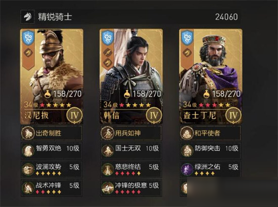 汉尼拔作为主将,韩信是副将,作为主将的汉尼拔同时具有武力和谋略伤害,而韩信则是辅助以追击伤害,查士丁尼给阵容提供坦度和恢复等BUFF,让阵容更加抗揍。