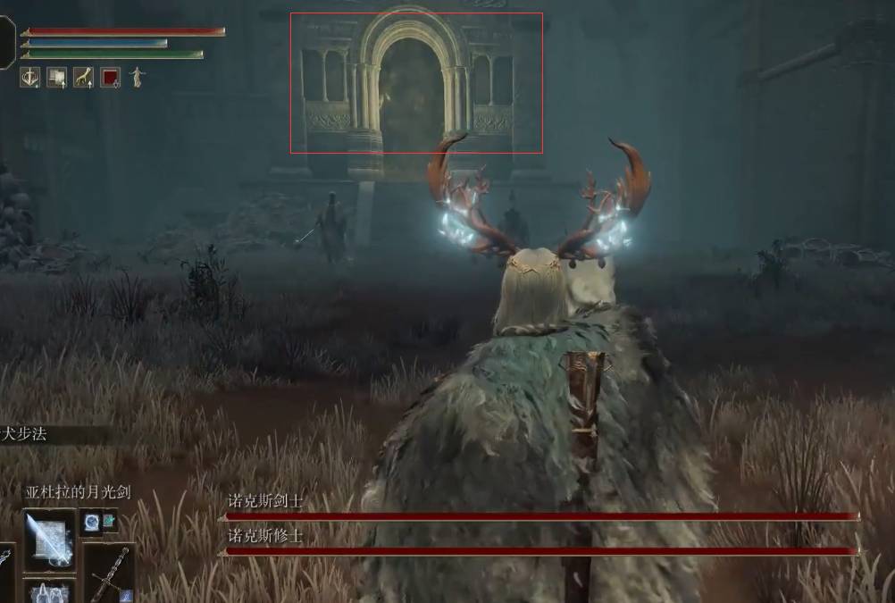 4、随后,就会看到双BOSS“诺克斯剑士”,我们需要打败他们,然后BOSS身后房间的雾门才能解开,如下图,