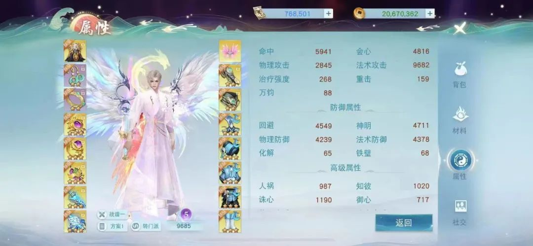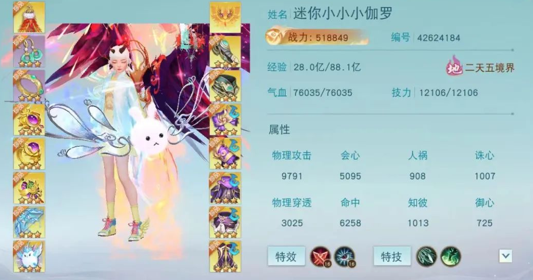 这是太虚丷糜灬的属性,9682点法攻配上4816的会心,无论是PVP还是下副本,都属于超级厉害的存在!1190点诛心和987点人祸,配合4811点神明,一出手绝对是大佬级别的伤害。