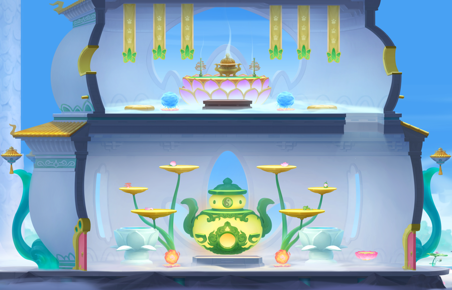 兜率宫是太上老君炼丹论道之所。一楼伫立着一鼎硕大的炼丹炉,旁边摆放着水缸与火盆。不妨试试向里面放入不同的道具,也许就能发掘你的炼丹天赋呢!而二楼是论道的地方,在蒲团上闭目沉思,檀香徐徐,可以静心凝神。