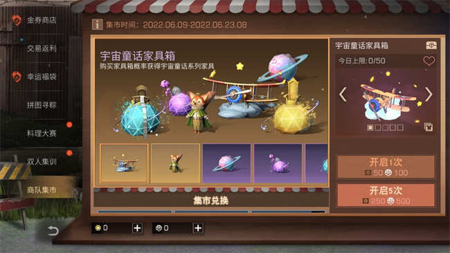 6月9日-6月23日8点,“宇宙童话家具箱”限定登场,“飞跃星空号”、小狐尼尼玩偶、玫瑰星球床等童趣十足的家具带你穿越回纯真的童年时代。6月16日-6月23日,“太空歌谣”家具箱限时返场,律动调音台、全息投影台为废土生活增添几分酷炫!