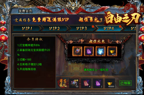 贪玩平台《自由之刃》是一款大型多人在线角色扮演游戏,上线攻速直接拉满!高阶装备能合成能升阶!所有野外地图全部无限制进入!绝对自由的版本,给你至尊体验!特色时装地图,N套时装等你爆!爆率超高!小怪也能爆终极!拼的是人品,玩的是激情!