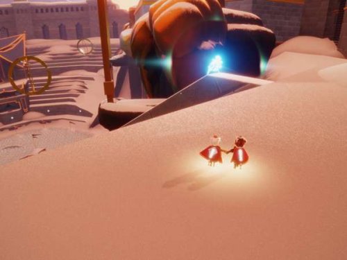 2、在顶端找到先祖,点燃后跟着他在楼梯上滑来滑去就可以了。