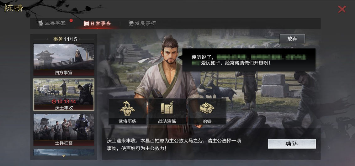 正如三国时期多股势力对农耕田地互相掠夺的真实状况,《率土之滨》本次的沃土玩法也是基于历史时代而设计的。在游戏中,若是玩家能够令一块土地保持丰收状态,便会获得同县百姓的爱戴,这些沃土丰收事件不仅会给玩家带来丰富的收益,也能凸显出在战乱时期百姓生存不易的真实感。