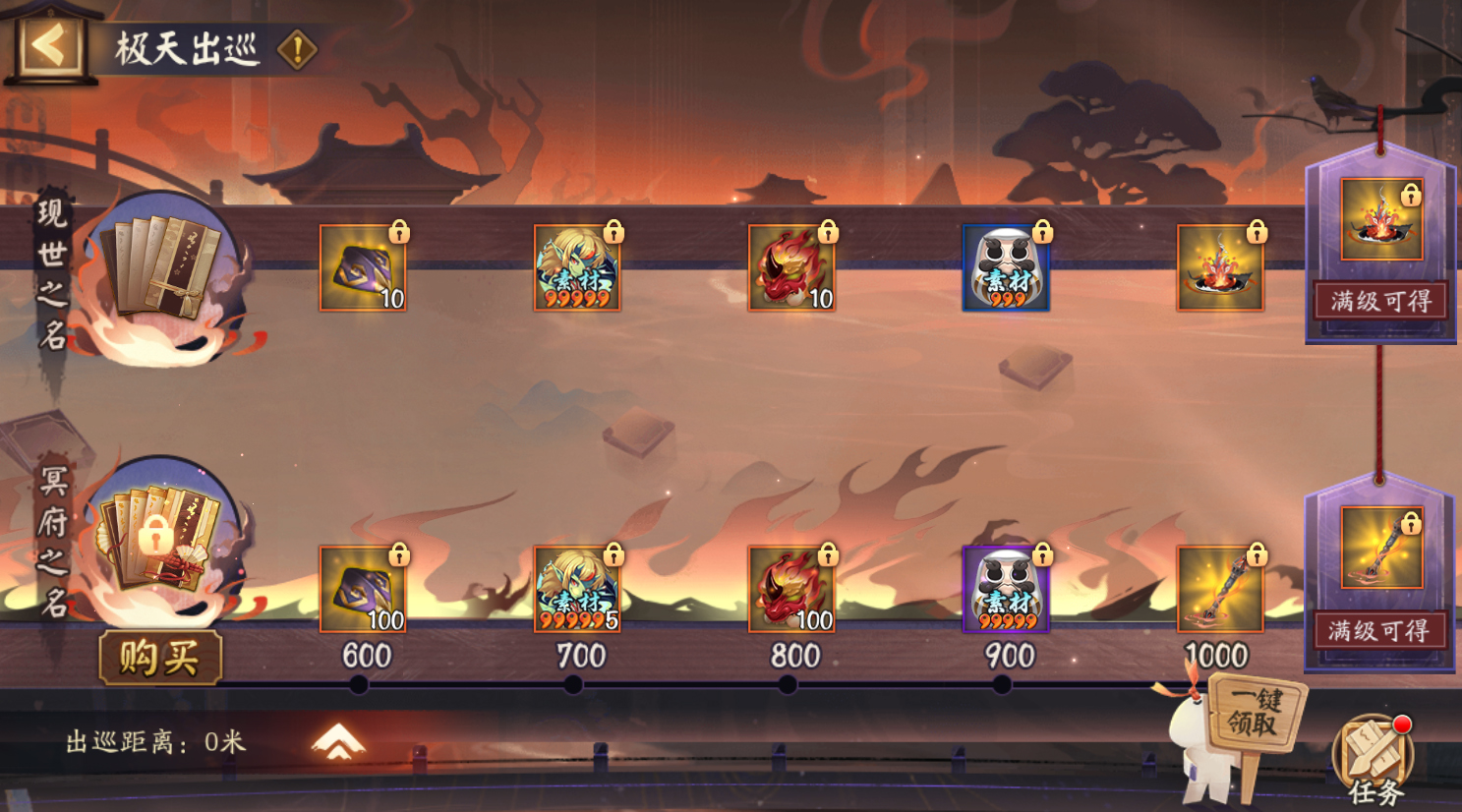 活动分为「三途轮回」「百鬼乱狱」「五浊清净」「生死之簿」四部分,参与玩法收集「亡灵游名」「行乐典金」可在「极天出巡」「冥途商店」兑换丰富奖励。