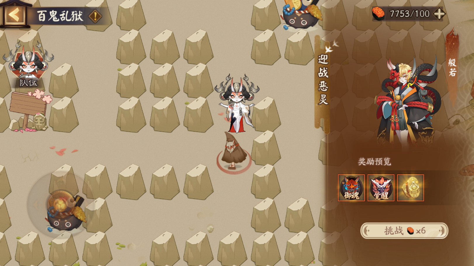 每次挑战需要消耗1个冥河夜灯,战斗胜利后可获得「行乐典金」、「牛鬼」、「马面」、阴阳寮勋章等奖励。