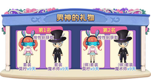 3、 发放“男神的礼物”排名奖励后,重置排名与奖励,玩家已积攒心动值不受影响。
