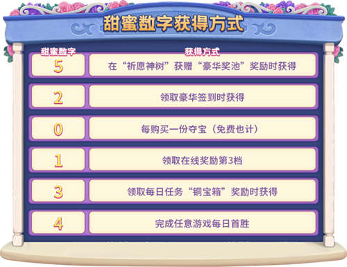 活动规则:每种“甜蜜数字的嘉奖”只能领取一次,领取之后消耗对应数字;