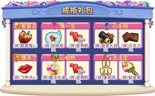 二重礼:所有成功求婚的玩家将能够根据戒指等级获得对应礼包!