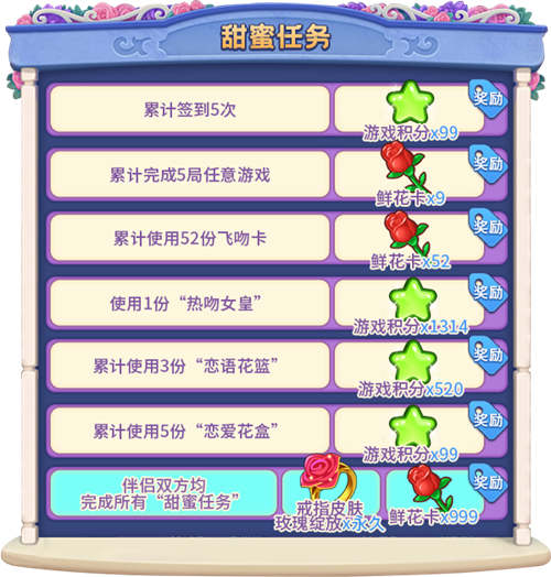 2、 “甜蜜任务”在活动期间只能完成一次;