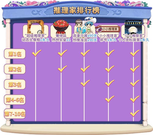 在活动结束后,为推理家排行榜上前10名玩家发放特别礼物!