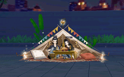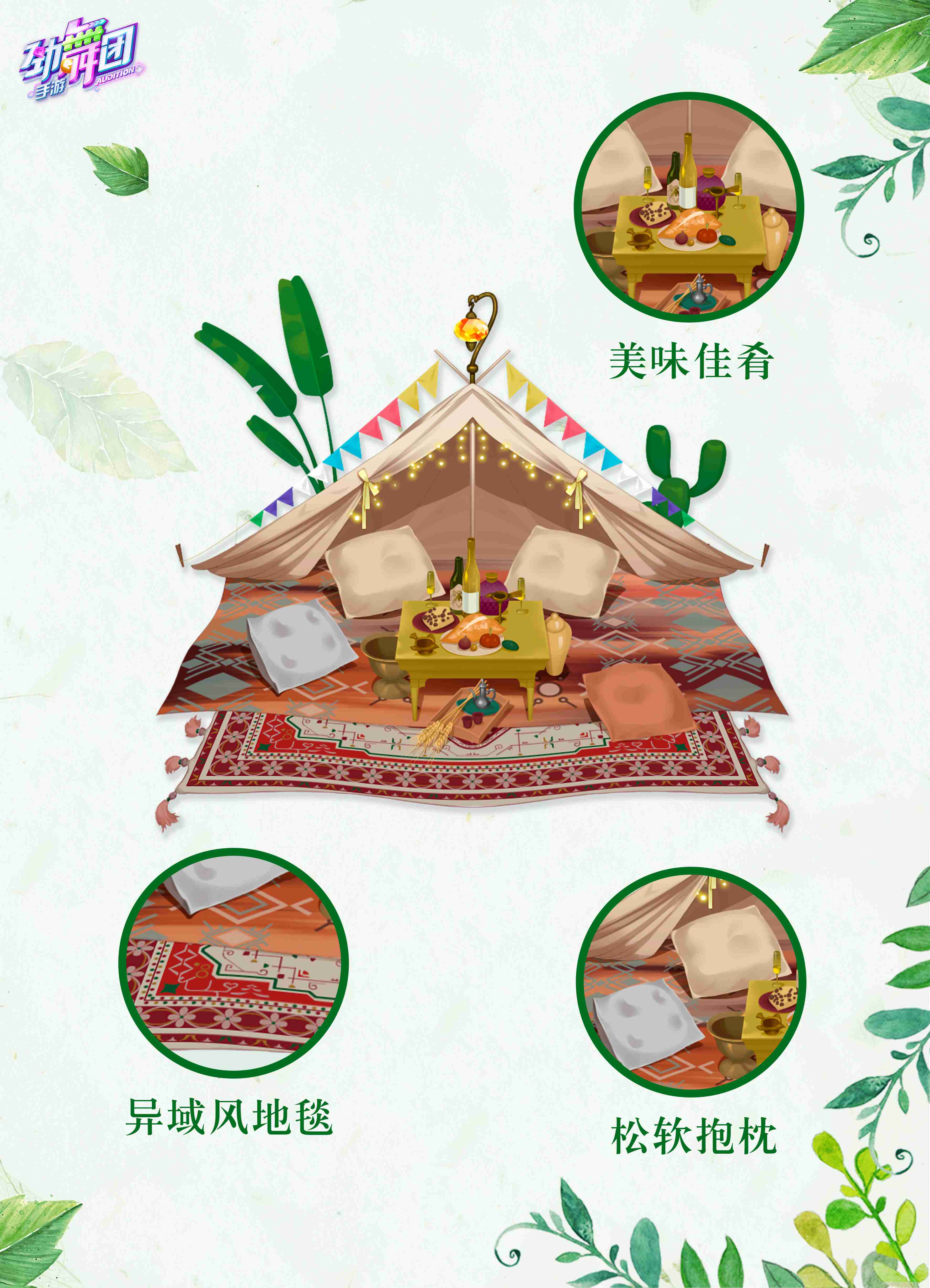 本期上新双人坐骑【惬意时光】,简约轻便的帐篷搭出温馨小窝,松软的抱枕随意地铺在异域风地毯上,木制矮桌上摆满诱人的美食,帐篷周围点着篝火,晚风轻轻吹起,浪漫氛围感瞬间拉满!在炎热的夏天里,来一次户外的浪漫之约,与心爱的TA窝在帐篷里,尽享夏日晚风轻抚,共赏繁星美景,聊天畅谈,惬意又自在,这便是夏日最让人向往的“惬意时光”吧!