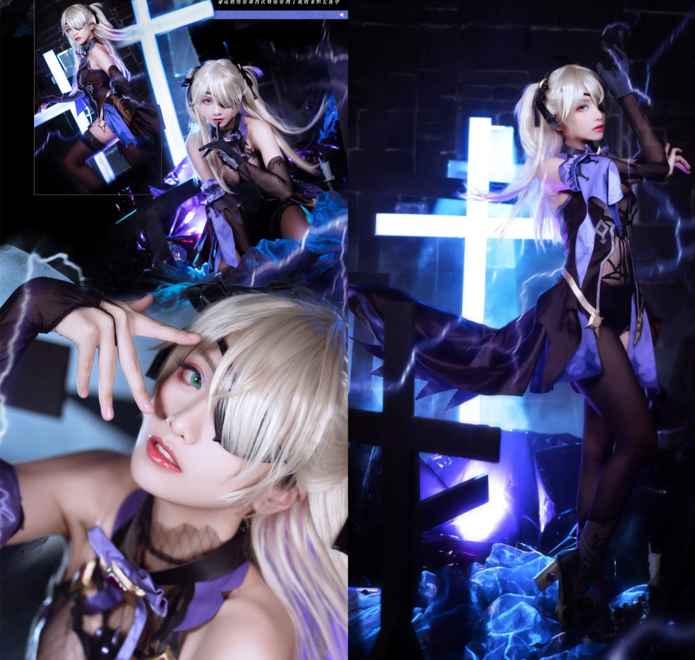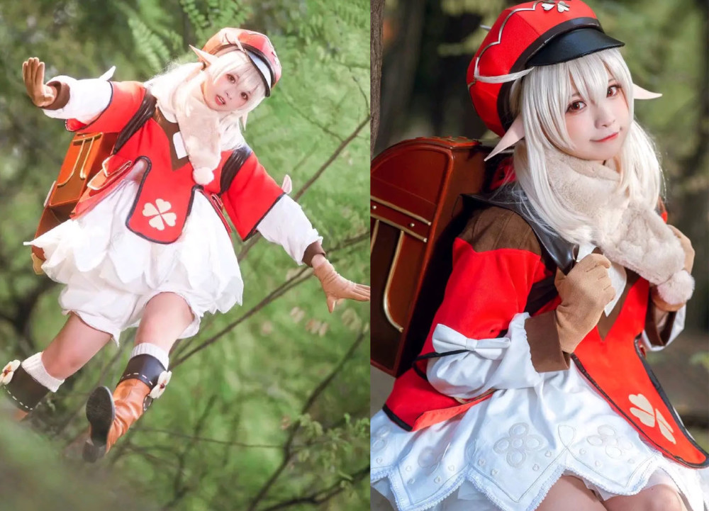 可莉的出场永远伴随着闪光与爆炸,然后再默默消失。这位能力不可小觑的神秘人物,其实只是活泼可爱的少女,千万不要因为她破坏力大就不喜欢她哦。这位小姐姐的cos是在用餐的氛围之中,手握刀叉显得非常高兴。旁边莫娜正在看着这一切,两人之间相处太宠溺。