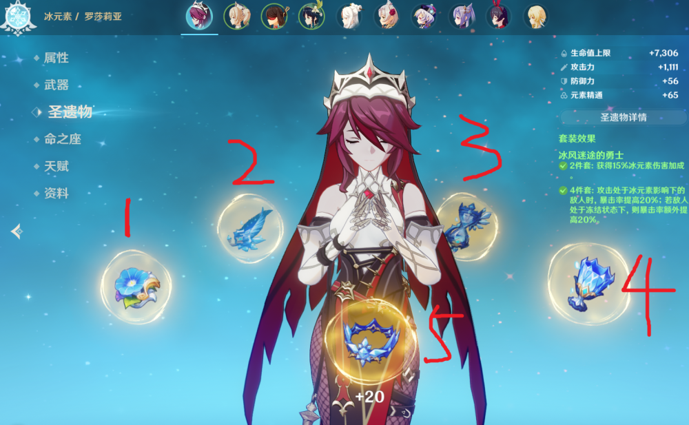 就圣遗物来说,一共有五件(类似于其它游戏的装备),其名称分别是:生之花、死之羽、时之沙、空之杯、理之冠,分为五个不同的组成部分。圣遗物的属性,分为主词条和副词条两种:主词条只有唯一的一条,随机且强化后增强;副属性可以有很多(1~4条),强化之后随机增强某一条。这也说明了,圣遗物的强化,并不是一定可以落在你培养角色想要的属性上面,也就是有很大的不确定性。